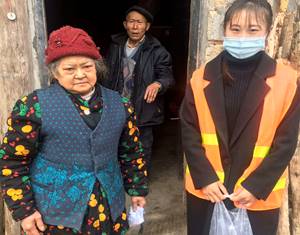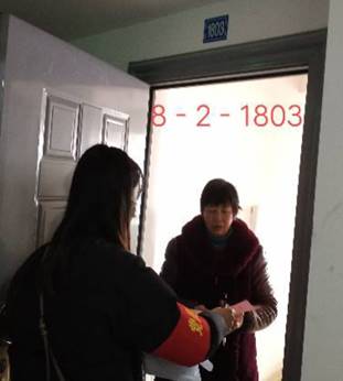 刘玉霞同学为群众分发口罩