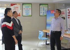 学院党委副书记胡昌荣教授陪同江光伟副书记一行调研了学院青年创新创业基地、学生会和学生社团阵地,详细了解了学生会、学生社团工作开展情况。