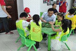 在快乐集市公益行活动中,志愿者协助小朋友们编织艾草花环、包粽子、完成无敌风火轮游戏和乒乓球传递接力赛。活动结束后,志愿者们为小朋友们赠送了书包、篮球、羽毛球、玩具等礼物。