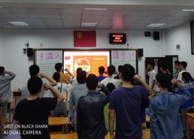 活动伊始,各支部团员全体起立,奏唱共青团团歌《光荣啊!中国共青团》。紧接着,各支部由团支书带领同学们面向团旗庄严宣誓,使同学们增强自身的政治意识,大局意识,核心意识和看齐意识。